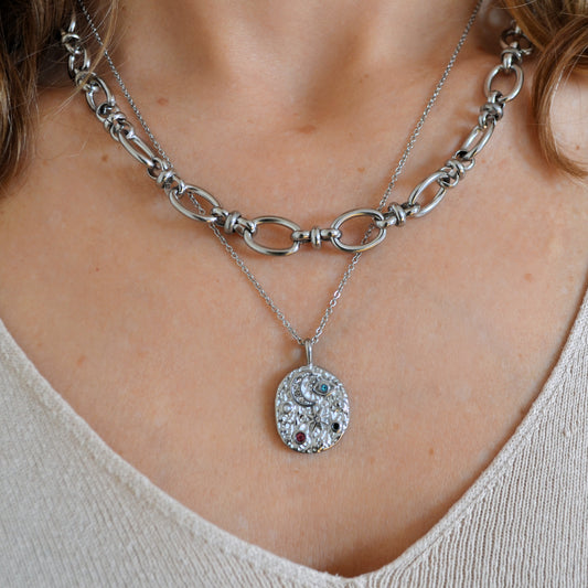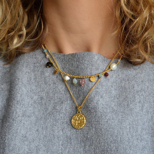 Gargantilla larga Sol y Luna WATERPROOF (acero y dorado)