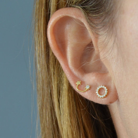 Pendientes Mini Estrella 1 Circonita (plata y oro)