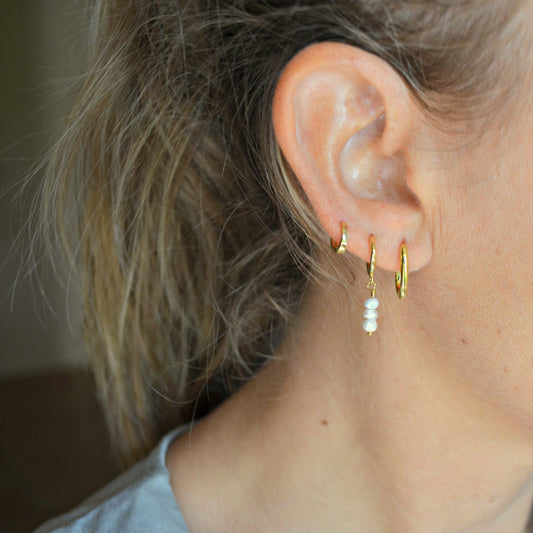 MEDIUM Pearl Creole hoops (silver and gold)
